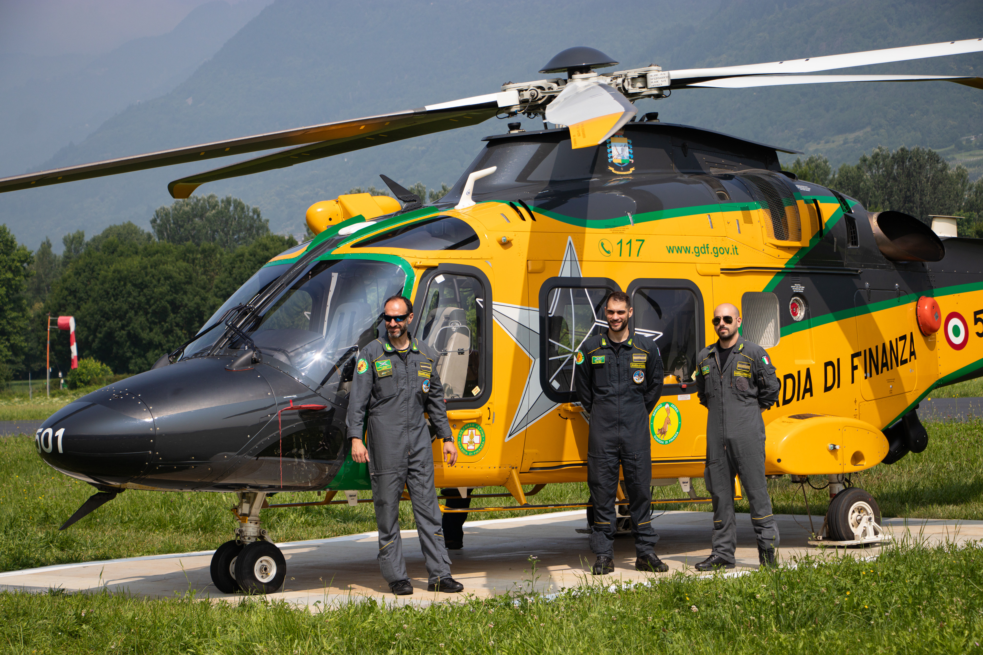 -La Guardia di Finanza avec 1 uh-169a de la section aérienne de varese et des équipes spécialisées en sauvetage alpin.